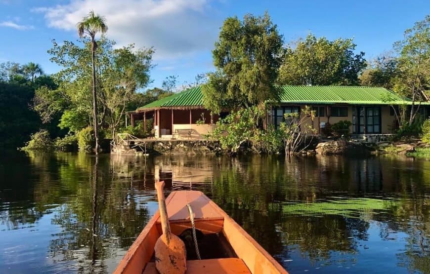 Hotel con 88 habitaciones alrededor de la laguna, todas con aire acondicionado y agua caliente. Pensión completa, excursiones en curiara, caminatas a saltos y logística de traslados. Ambiente confortable en plena selva.